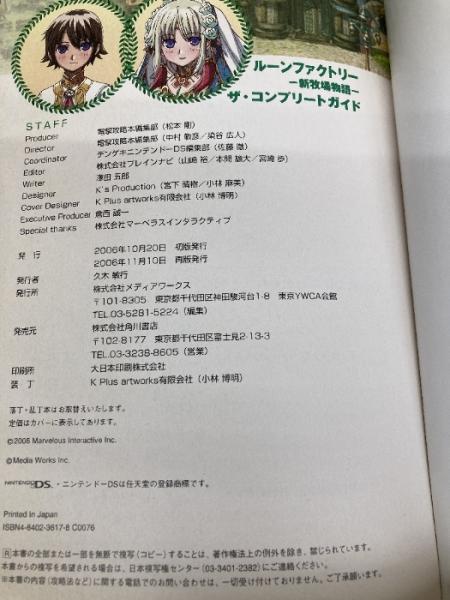 ルーンファクトリー -新牧場物語- ザ・コンプリートガイド メディアワークス デンゲキニンテンドーDS編集部
