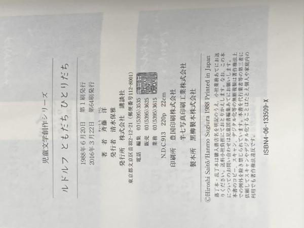 ルドルフ ともだち ひとりだち (児童文学創作シリーズ) 講談社 斉藤 洋