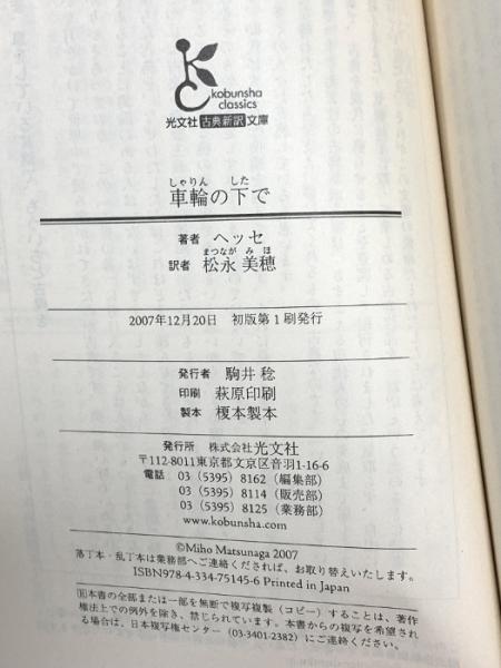 車輪の下で 光文社 ヘッセ