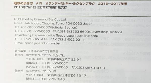 A19 地球の歩き方 オランダ ベルギー ルクセンブルク 2016~2017 (地球の歩き方 A 19) ダイヤモンド・ビッグ社 地球の歩き方編集室
