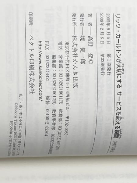リッツ・カールトンが大切にする サービスを超える瞬間 かんき出版 高野 登
