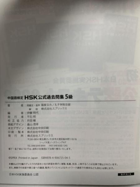 中国語検定 HSK 公式 過去問集 5級 スプリックス 株式会社スプリックス