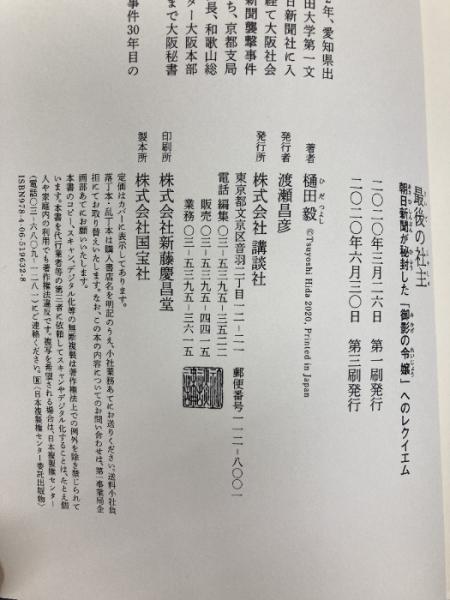 最後の社主 朝日新聞が秘封した「御影の令嬢」へのレクイエム 講談社 樋田 毅