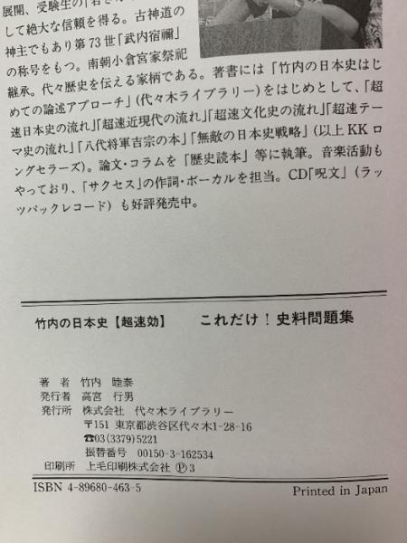 竹内の日本史 超即効 これだけ史料問題集 代々木ライブラリー 竹内 睦泰