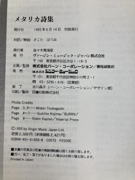 メタリカ詩集 (BURRN BOOKS)