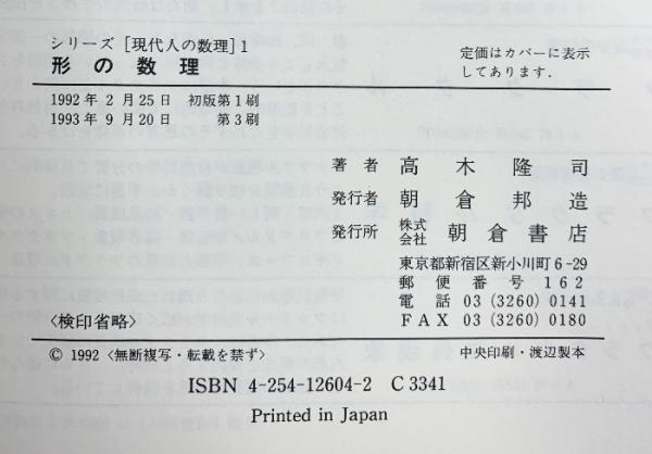 形の数理 (シリーズ現代人の数理 1) 朝倉書店 高木 隆司