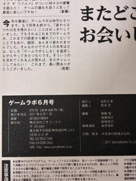 ゲームラボ2017年6月号 三才ブックス