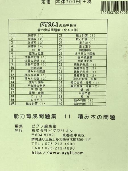 ピグマリオン 能力育成問題集11 積み木の問題 構成把握 (PYGLIシリーズ) ピグマリオン 伊藤 恭