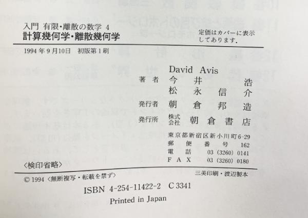 計算幾何学・離散幾何学 (入門有限・離散の数学 4) 朝倉書店 David Avis
