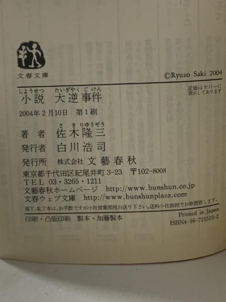 小説 大逆事件 (文春文庫 さ 4-15) 文藝春秋 佐木 隆三