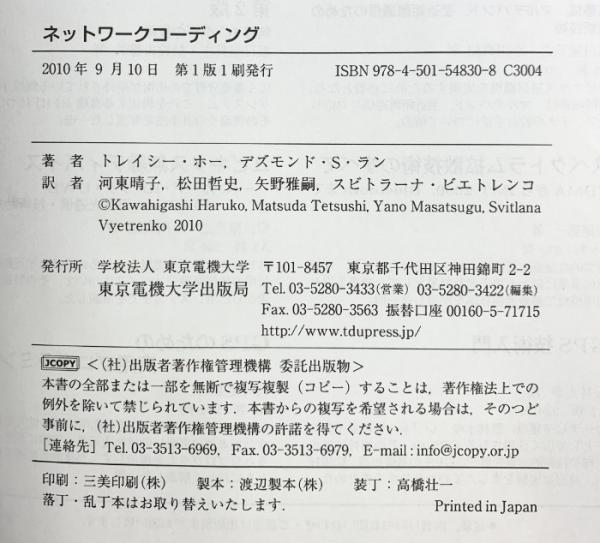 ネットワークコーディング 東京電機大学出版局 トレイシー・ホー