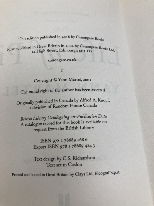 【※書き込み有】Life Of Pi Canongate Books Ltd Martel, Yann