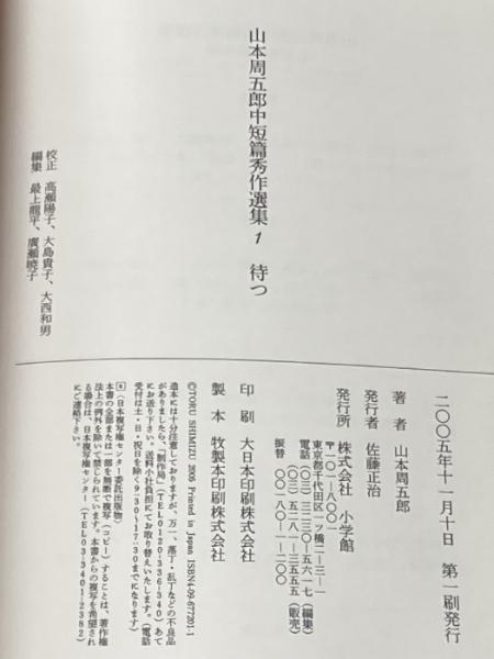 山本周五郎中短篇秀作選集 1 待つ 小学館 山本 周五郎