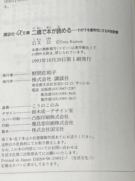 二歳で本が読める: わが子を優秀児にする早期読書 (講談社+アルファ文庫 C 2-1) 講談社 公文 公