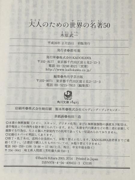 大人のための世界の名著50 (角川ソフィア文庫) KADOKAWA 木原 武一