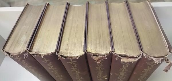 • 解説 裸本。天金。縁強イタミ・ヤブレ。ヤケ・変色・シミ汚れ。三方汚れ。1:見返し折れシワ。2・3・4・5・6:見返しに賜天覧印。3・4・5:背キズ。6:のどイタミ。通読に問題ございません。ゆうパック80サイズ