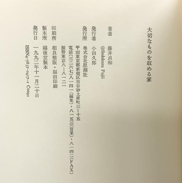 大切なものを収める家 思潮社 藤井 貞和