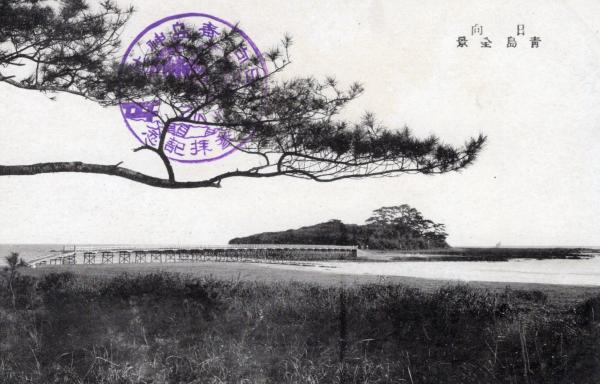 戦前絵葉書〇宮崎県 日向 青島全景(橋は弥生橋) 古写真○和本古書古文書