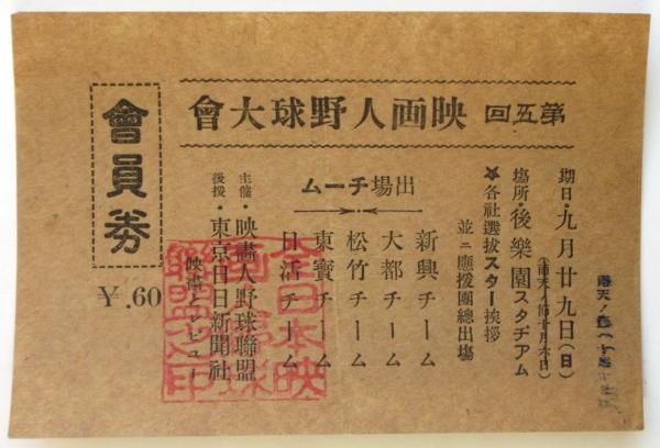 第五回映画人野球大會 會員券