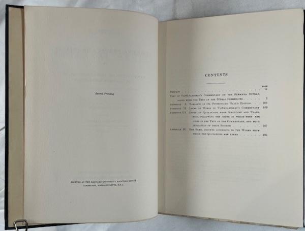 • 解説 Volume 2 of the Harvard Oriental Series, edited by Charles Rockwell Lanman, presenting the critical edition of The Sāṃkhya-pravacana-bhāṣya, a key commentary on Sāṃkhya philosophy by Vijñānabhikṣu, edited by Richard Garbe. Published by Harvard University Press, Cambridge, MA, 1943 (Second Printing). Hardcover in original navy cloth with gilt lettering; English front matter and transliterated Sanskrit text. Condition: Good tight binding with legible gilt and dulled top edge gilt; deckled edges with age-toning; small inventory label on front cover; interior clean and unmarked.