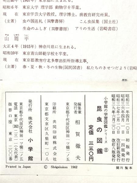 小学館の昆虫の図鑑 学習図鑑シリーズ2 昭和39年 株式会社小学館
