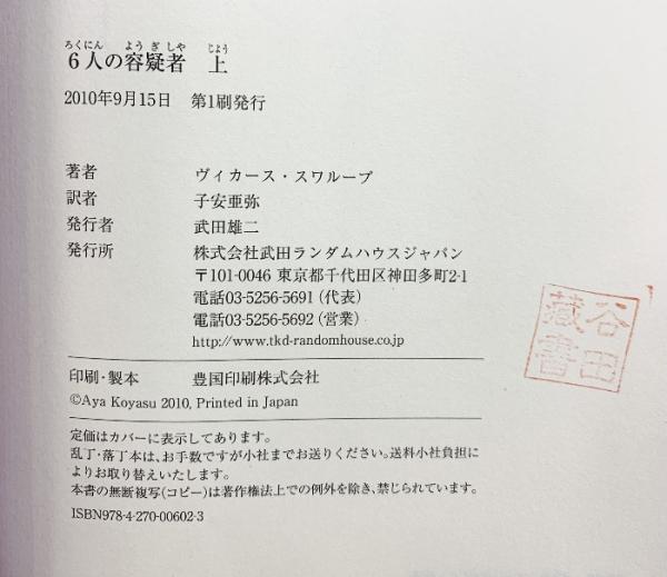 6人の容疑者(上) 武田ランダムハウスジャパン ヴィカース スワループ 子安亜弥:訳