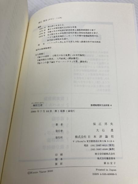 解析力学 (数理物理学方法序説 6) 日本評論社 保江 邦夫