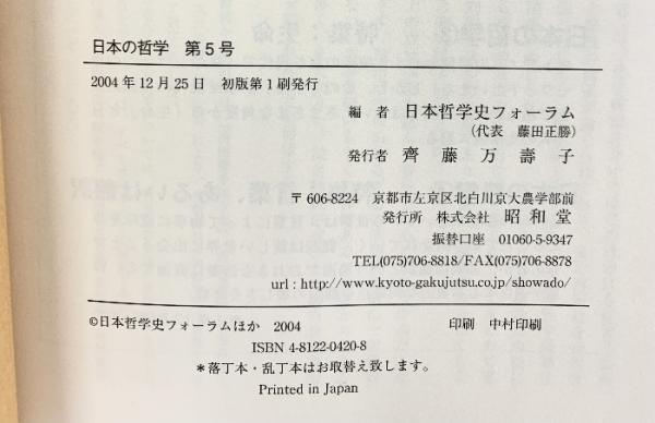 日本の哲学 (第5号) -無/空- 昭和堂 日本哲学史フォーラム