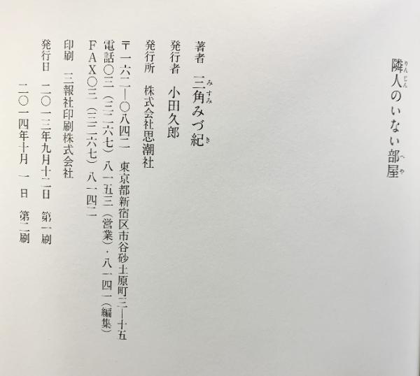 隣人のいない部屋 思潮社 三角 みづ紀