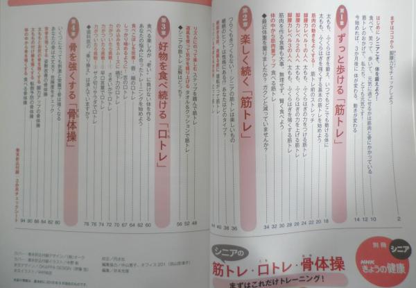 まずはこれだけトレーニング! 折込付録/「3か月チェックシート」ではじめる健康長寿の体作り まずはココから/脚腰力をチェックしよう はじめに/シニアこそ、体を鍛えよう! 第1章/ずっと歩ける「筋トレ」 第2章/楽しく続く「筋トレ」 第3章/好物を食べ続ける「口トレ」 第4章/骨を強くする「骨体操」