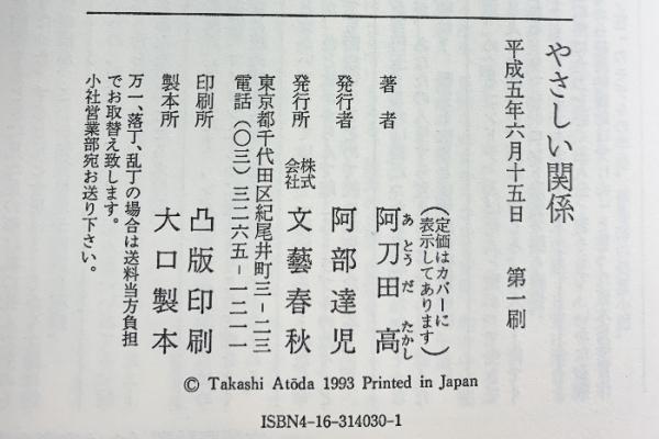 やさしい関係 文藝春秋 阿刀田 高