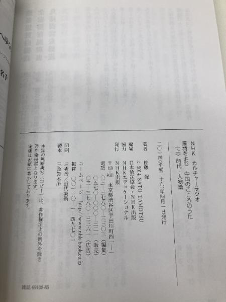 NHKカルチャーラジオ 漢詩をよむ 中国のこころのうた(上)―時代・人物篇 (NHKシリーズ) NHK出版 佐藤 保