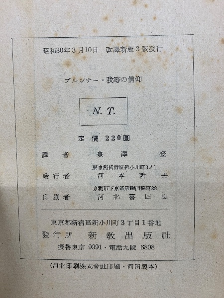 ブルンナー 我等の信仰   改訳新版3版