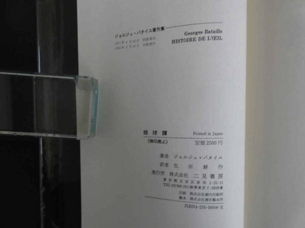 6 6 眼球譚 太陽肛門/供犠/松毬の眼 ジョルジュ・バタイユ 生田耕作訳 二見書房 1994年18版