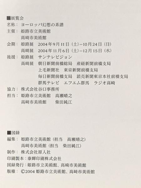 図録 ヨーロッパ幻想の系譜 Fantastic Art in Europe XIX-XX Centuries 2004年 姫路市立美術館 高崎市美術館