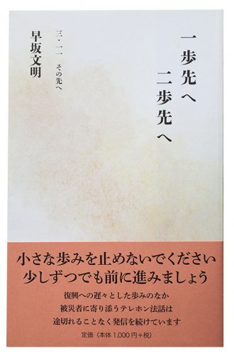 被災者と被災地に寄り添い歩み続ける早坂文明氏の、「テレホン法話第二選集」となる『一歩先へ 二歩先へ 三・一一その先へ』が、刊行されました。この三月で三周年を向かえる東日本大震災。遅々とした復興の歩みのなか、「小さな歩みを止めないでください。少しずつでも前に進みましょう」とテレホン法話は途切れることなく発信しています。