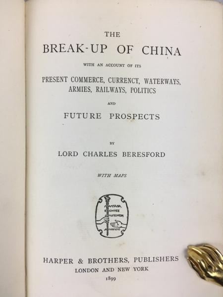 『中国の挫折』 初版 1899年 ロンドン刊 / The Break-up of China with an Account of its Present Commerce, Currency, Waterways, Armies, Railways, Politics and Future Prospects. London, Harper & Brothers, 1899