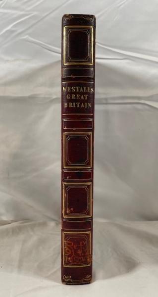 • 解説 A classic 1830 topographical collection published by Charles Tilt, London, capturing early 19th-century Britain’s scenic beauty and industrial progress. Drawings by William Westall, A.R.A., engraved by Edward Finden and others, feature fine steel engravings two per page of castles, cathedrals, bridges, cities (Manchester, Newcastle, Lincoln), and rural landscapes. Bound in quarter leather with gilt titling and all edges gilt. Condition is Fair / Ex-Library, with typical library markings, a Sondley Reference Library bookplate, and call numbers. Interiors show moderate foxing and age-toning throughout, while the binding remains solid and tight, with shelf wear and rubbing to extremities.