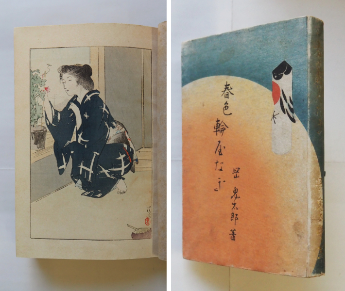 春色輪屋なぎ 初 表紙・綴・見返・奥付少痛 広告頁少書込 鏑木清方木版口絵入