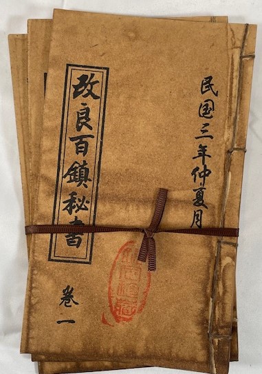• 解説 A complete three-volume set of Gailiang Baizhen Mishu (改良百鎮秘書), an early Republican-era Chinese manual on geomancy and occult practices. Published in Shanghai by the Jinzhang Book Bureau in 1914 (Republic of China, Year 3), the work covers Feng Shui, Yin-Yang theory, and talismanic protections for the home, with guidance on warding off harmful influences and promoting good fortune. The text was revised by the Daoist Yunshi.