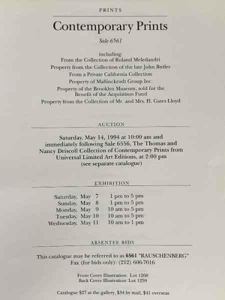 図録 SOTHEBY’S New York Contemporary Prints 1994年