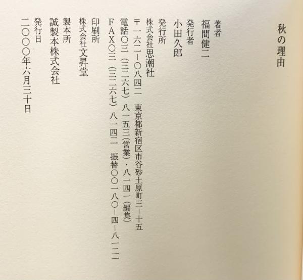 秋の理由 思潮社 福間 健二