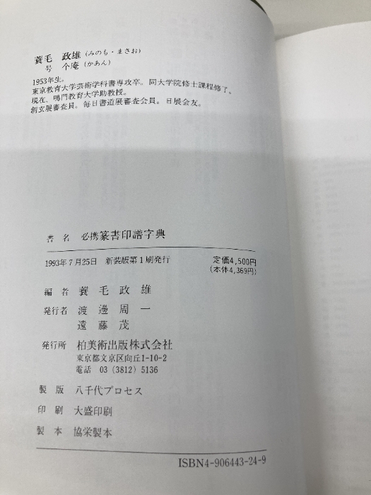 必携篆書印譜字典 新装版 柏書房 蓑毛 政雄