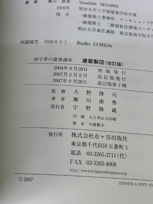 建築製図 (初学者の建築講座) 市ケ谷出版社 瀬川 康秀