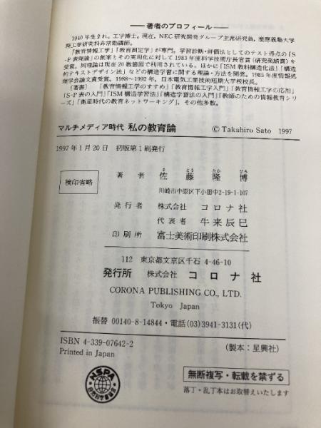 マルチメディア時代私の教育論 コロナ社 佐藤 隆博