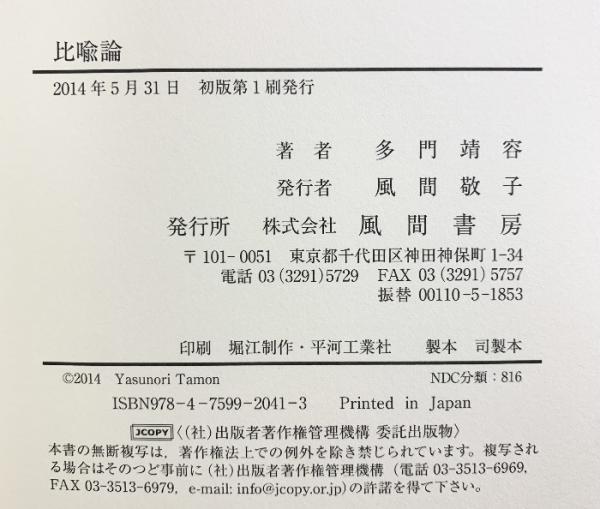 比喩論 風間書房 多門 靖容
