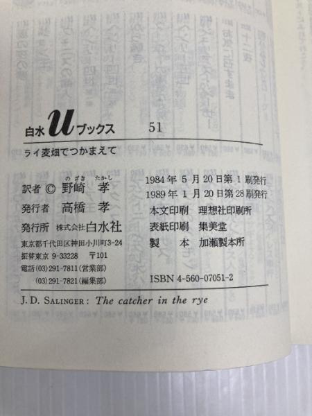 ライ麦畑でつかまえて (白水Uブックス 51) 白水社 J.D.サリンジャー