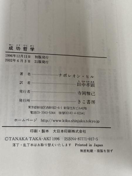 成功哲学 きこ書房 ナポレオン ヒル