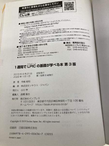 1週間でLPICの基礎が学べる本 第3版 (1週間シリーズ) インプレス 中島 能和