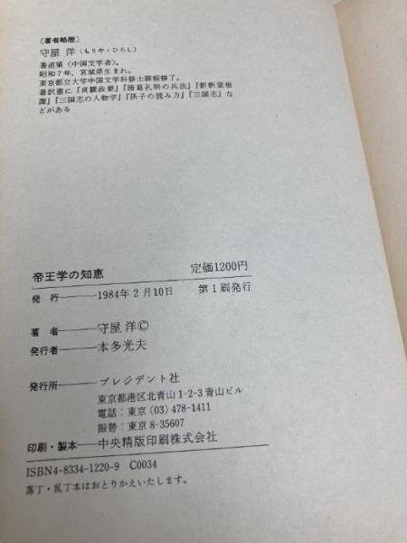 帝王学の知恵 プレジデント社 守屋 洋